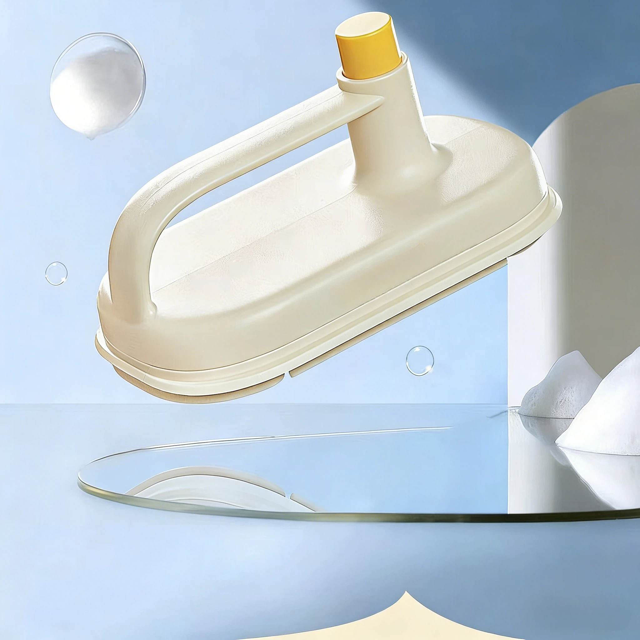 • This magic brush with nylon velcro at its base, easily adheres disposable cleaning cloths from the box. Press the button on the handle to eject the paper towel after use.