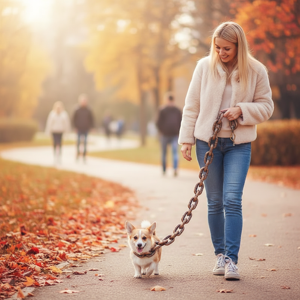 Thick Heavy Duty Eco-Friendly Cartoon Plastic Dog Leash with Large Iron Chain Funny Prank Walking Pet Supplies