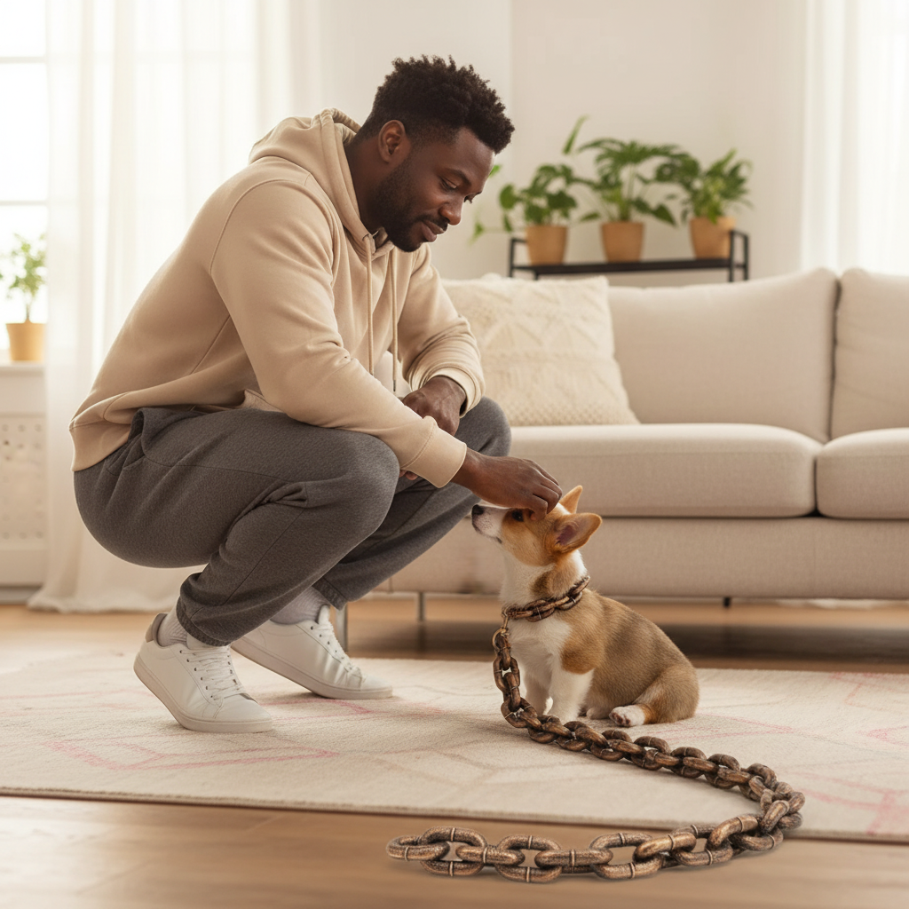 Exaggerated dog leash, imitating the production of iron chains